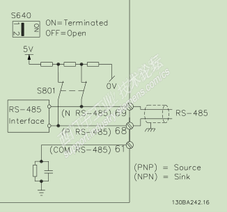 COM端是公共参考点位,在这里我理解是针对控制电源的M。这颗线主要是防止通讯受到噪声干扰的。你的第一张图上(照片)好像这个接了通讯的屏蔽层了。似乎不应该。如果按照第二张图(原理推荐接线),通讯电缆屏蔽层应该直接接大地,也就是设备的外壳,而端子61接控制电源的公共参考点位(也就是我们通常所说的电源0V)。它不是直接接在大地的,而是通过了一个RC电路,把交直流高频噪声引入大地。