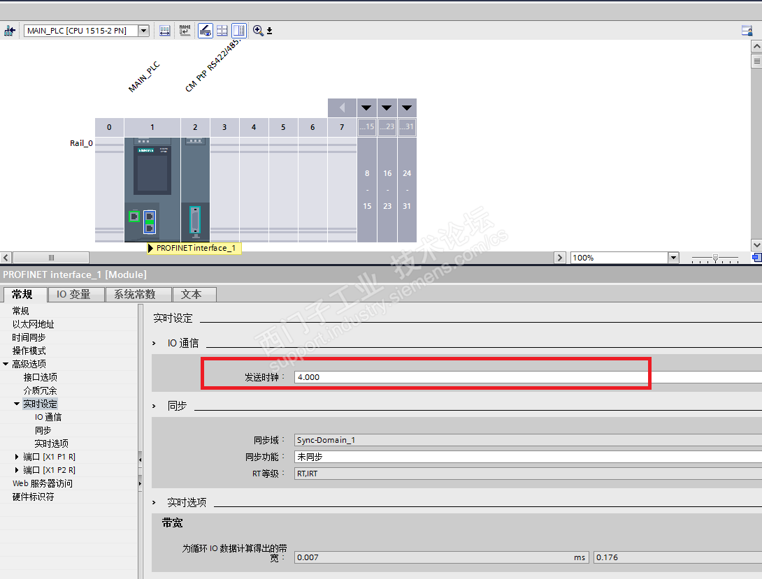 在1500的PN端口设置的发送时钟是不是此Profinet网络的通讯周期?如下图: