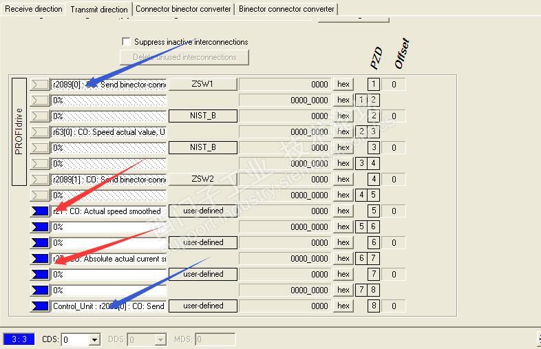 例如上面红色部分代表读取s120的速度和电流我想问一下,这个参数设置在6和7这一行和设置在6这一行有什么区别,包括蓝色状态字读取时也是有什么区别