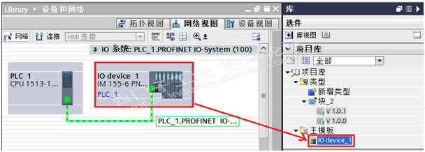 如果需要使用该主模板中的分布式I/O站,只需在网络视图中将主模板下的该分布式I/O站直接拖放到相应位置,并连接到其控制器即可。