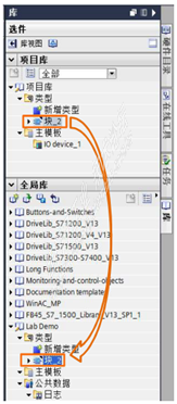 需要注意的是,项目中的对象可以直接通过拖放的方式添加到全局库的主模板中,但是不能以同样的方式添加到全局库的类型中;全局库中的类型只能来自于项目库中的类型,可通过拖放的方式将项目库中的类型添加到全局库的类型中,操作步骤如图15- 15所示。