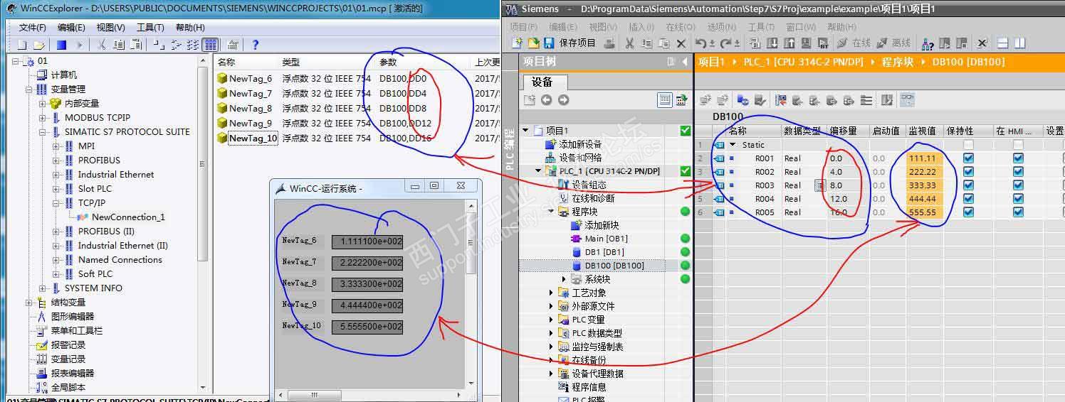 你的截图确实是对的,一般的做法是DB100.R004是对应DB100.DD4*4,不过在变量属性里面要选择是32位浮点数。