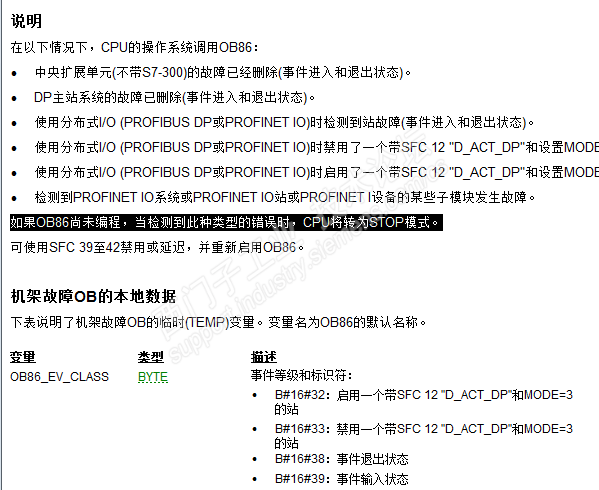 设备运行一段时间,报此故障,CPU会闪断,然后自动恢复,但是导致外部设备全部停止。如何才能够做到就算报警,也不停止外部设备。本人已使用:OB122、OB82、OB121.