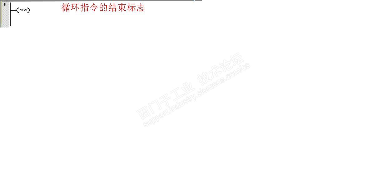 4) For/next指令实际上理解起来比较容易,其中,indx(INT)管脚是存放实际循环次数的,init(INT)管脚是指定起始循环计数,final(INT)是指定需要循环的次数。循环指令自调用(沿或者中断程序)for指令开始,直到next结束作为一次单循环,再返回到for指令开始第二轮循环。当final指定的循环次数 = indx记录实际循环次数时,自动跳出循环指令,完成整个循环过程,这个过程仅仅需要一个扫描周期时间。