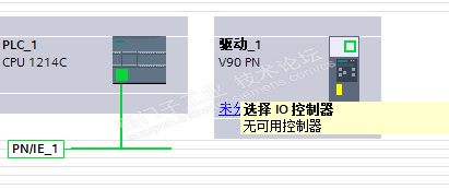使用TIA V14 SP1组态S7-1200 + V90 PN,添加了V90的HSP,用添加硬件的方式添加的V90(不是用GSD文件),添加之后V90显示未分配,当点击选择控制网络时提示无可用控制器。