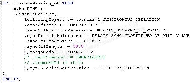 syncOffMode := ON_MASTER_POSITION/ON_SLAVE_POSITION 就停不下来