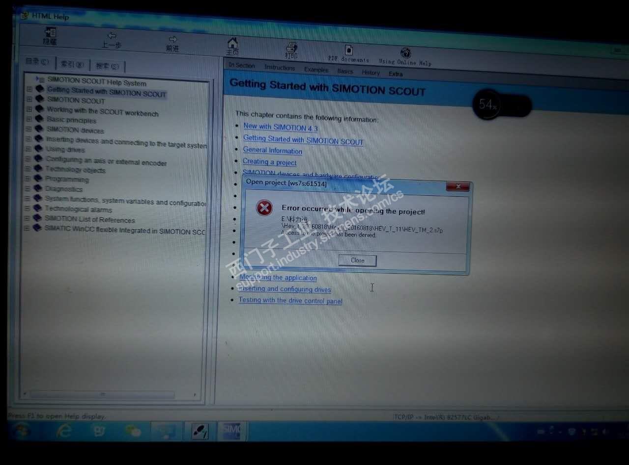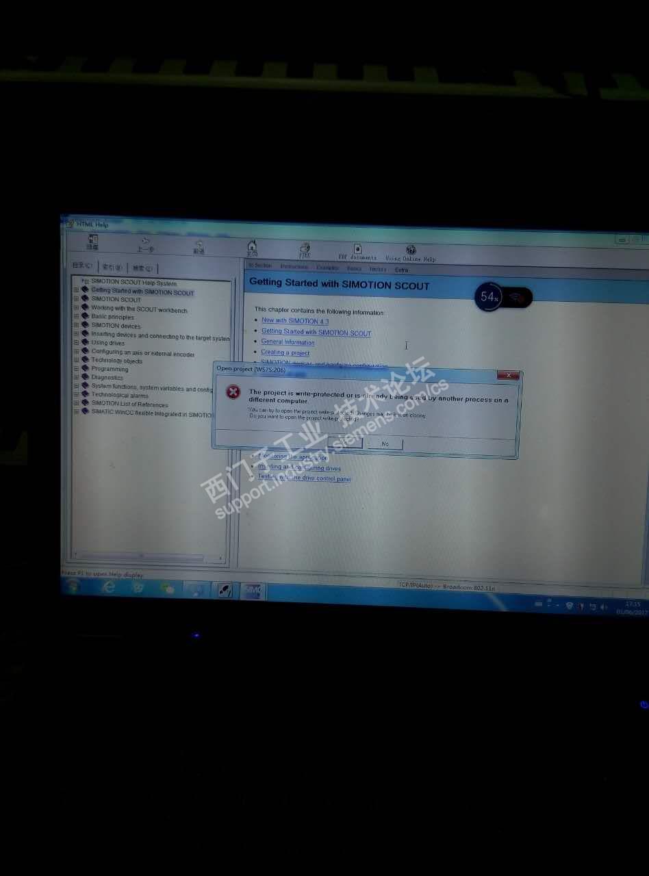 我们有台设备程序在打开S120时出现附件图片所示的问题,大家能帮我分析可能是是什么原因