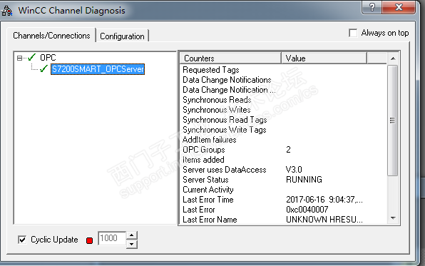 wincc7.3与200smart通过opc通信不上 opc与wincc在同一台电脑上现在opc能与200smart顺利通信,同时opc也能与组态王通信上opc与wincc7.3通信不上,变量添加也能通过官网说明顺利完成添加,但就是用到画面没有显示,不管是开关量还是16位的整形数据,都不能传到画面