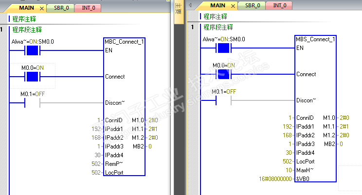 两台200smart连接,一台当服务端,一台当客户端。请问哪里设得不对。