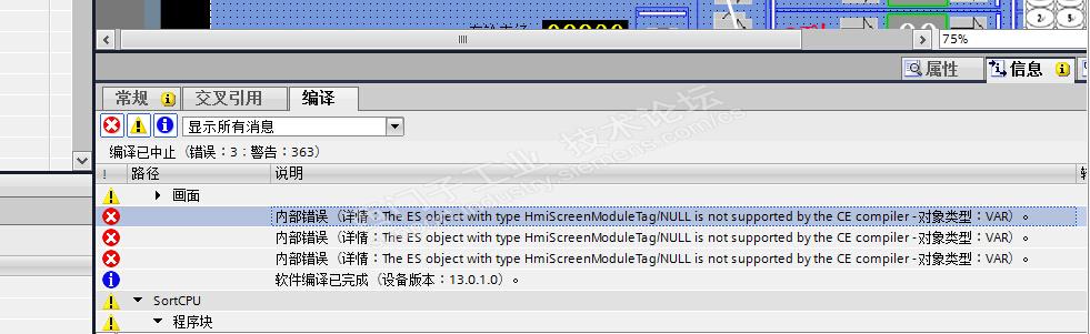 最近现场因工艺需求,在原来的博途在WINCC 界面增加一个页面时编译错误是什么情况?