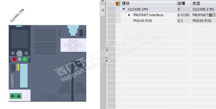 1、先说硬件组态吧,我都是按照设备的编号添加的硬件,我这里只是想调试电机,所以其他无关的硬件我就没有组态,这里就是一个315,一个CU240E-2PN,一个功率模块PM240