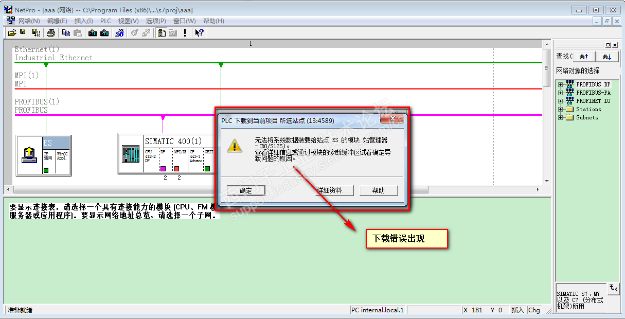 最近想学习一下WINCC,找了技成梁老师的WINCC应用于提高视频,一边看一边做实验。在做工程师站和操作员站的硬件组态是出现新建的组态无法下载错误,上网搜了半天也没找到原因,无奈之下,请求论坛高手施已援助,万分感谢。