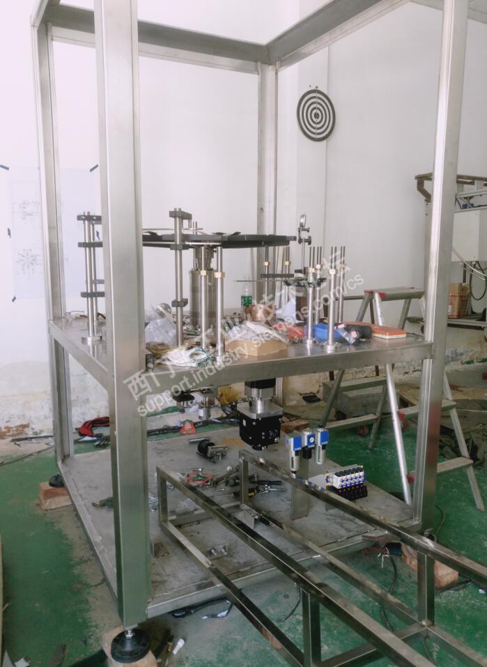 机械上,一个大圆盘,直径约一米,平均分8个工位,相隔45度。