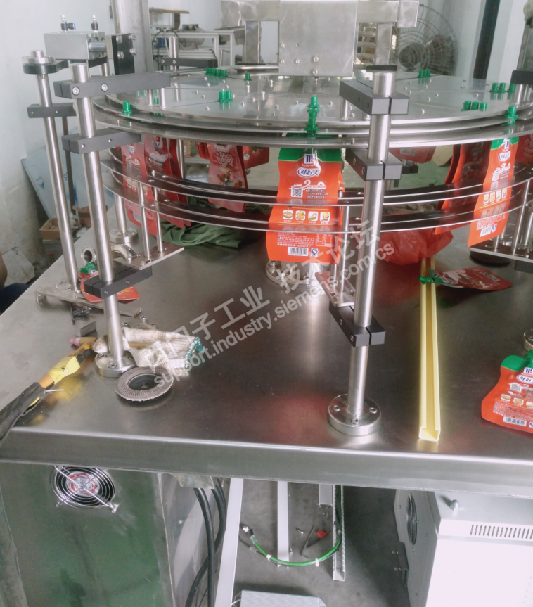 我设计的电控方案是,1217cpu(好像用不着,可以低一点,毕竟程序不算多),脉冲驱动三菱伺服(不要问我为什么不用西门子的伺服,那个电机的订货周期,你懂的,等不及了),转盘轴上加一个profilenet io 多圈绝对值编码器作为位置环闭环,编码器是SICK AFM60A-BDNB018X12,实现精准定位,且不需要每次开机对零位。