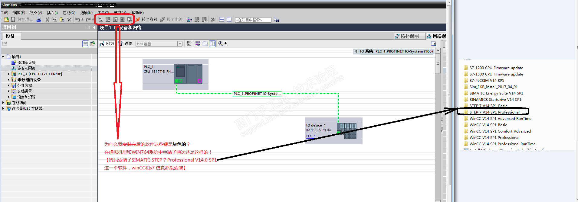 我在虚拟机WIN764位系统中安装完系统后就立刻安装的博途V14 SP1。结果安装完后发现一个问题: