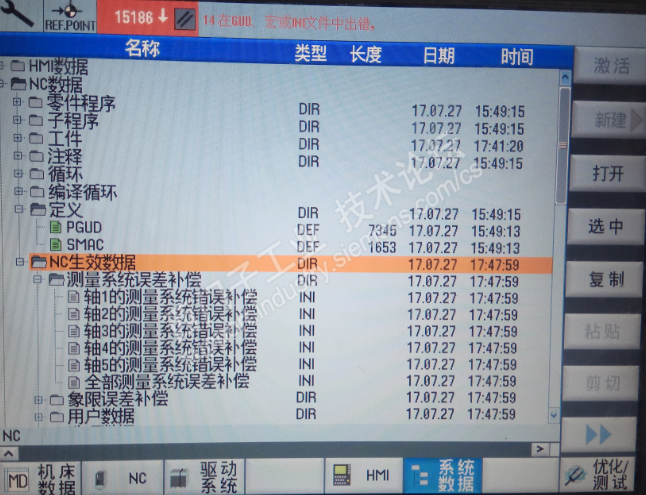 今天在试教机上琢磨一下螺距补偿怎么做出来的,根据调试手册上的更改38000然后去里面更改补偿数据激活就好了,但是实际做的时候问题来了,在PCU上最终还是没有这个选项。把里面的文件拷贝出来,但是有又无法粘贴回去,大家帮忙看看,指点一下。多谢了。