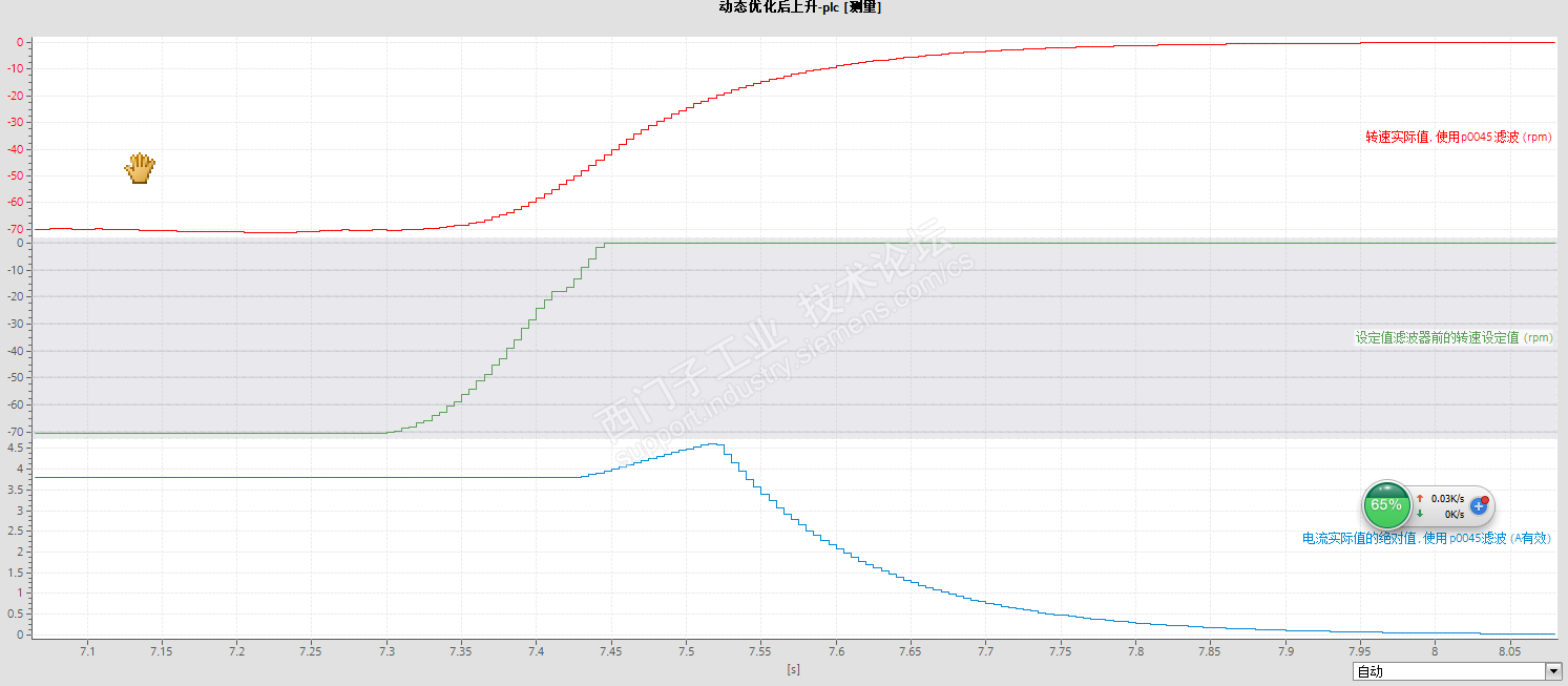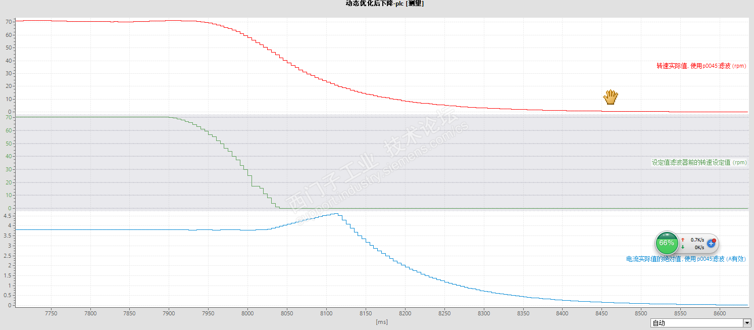 但是一加上负载,正转减速曲线又成了28楼的模样了,中间突变了一下,好郁闷。