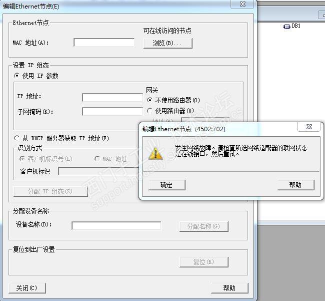 新买的plc,刚开始可以正常下载程序,过了两开重新连接就不可以了,程序了没有改,能够ping到该CPU的地址,但是在设置PG/PC接口时,通过测试,无法接口句柄,在s7-300 v5.5中编辑Ethernet节点里面浏览不到CPU的地址,求大神解答!