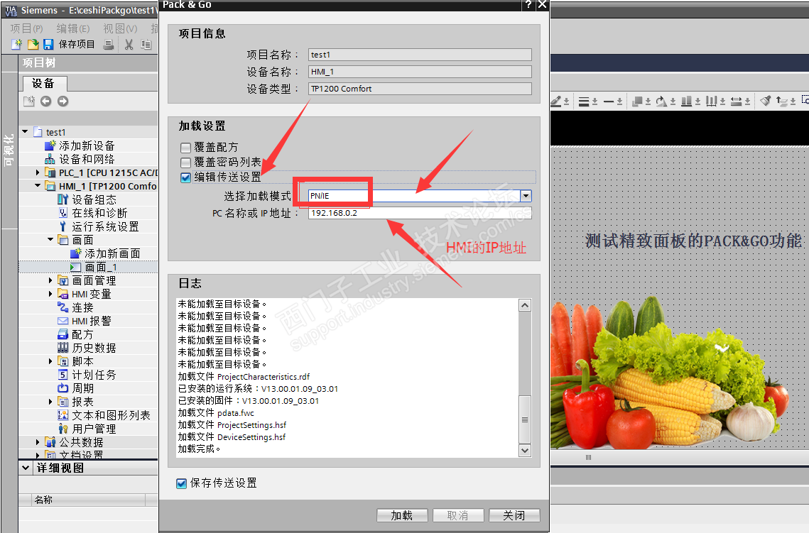 利用pack&go向TP1200触摸屏传送程序建立通讯连接(使用的以太网通讯)