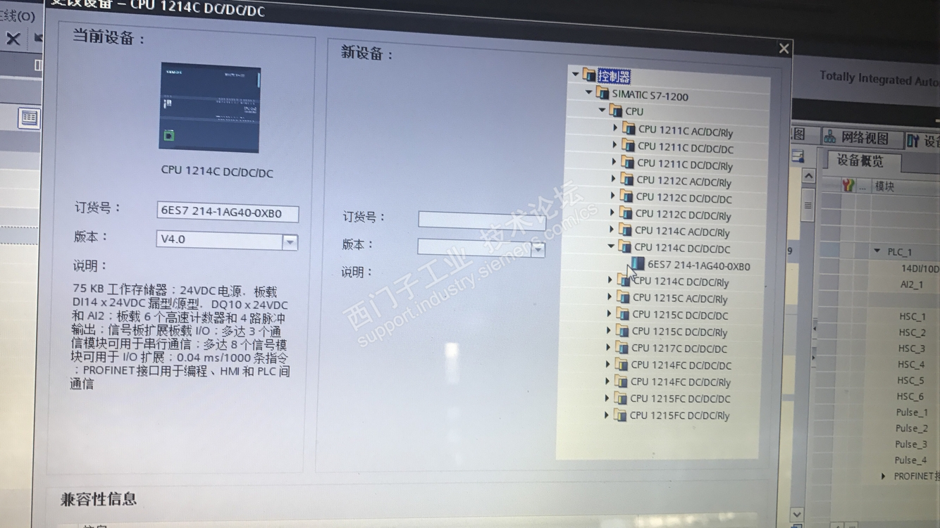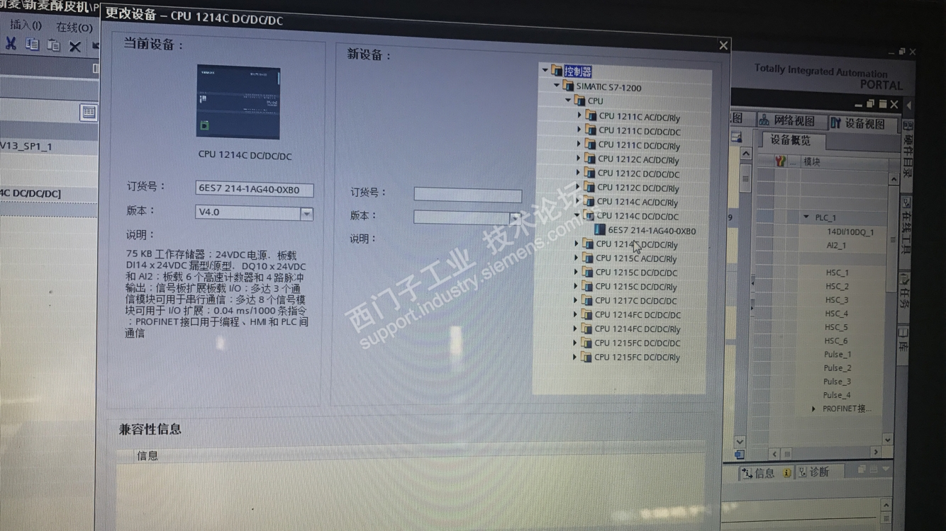 为什么博途V13中找不到我的为什么博途V13 程序中S7-1200 6ES7 214-1AG40-0XB0 更换设备改成6ES7214-1AG31-0XB0 却找不到这个型号 同样都是CPU1214C DC/DC/DC 求师傅帮我看看^ ^