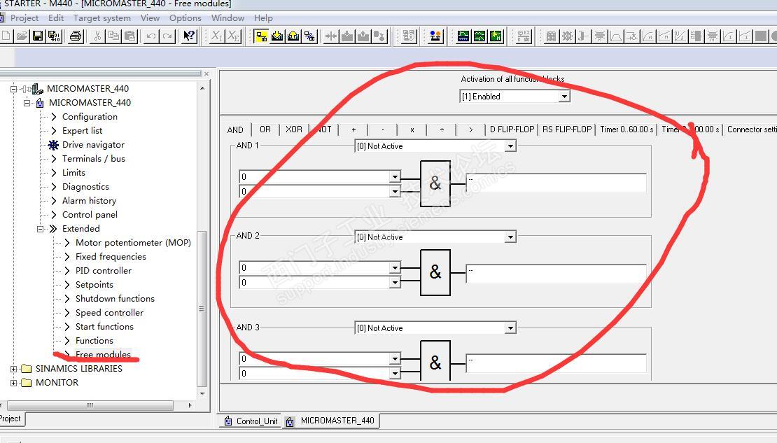 STARTER 怎么打开自由功能块调试窗口啊? MM440在功能树里面一找就找到的么