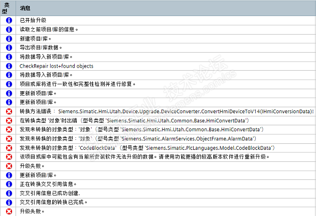 之前使用V13 sp1 up9,现在安装v14sp1up2后,打开之前项目就显示升级失败。之前项目都组态了HMI,尝试删除HMI后可以升级成功,请问大家是否遇到这种情况,不删除HMI怎样可以升级成功?