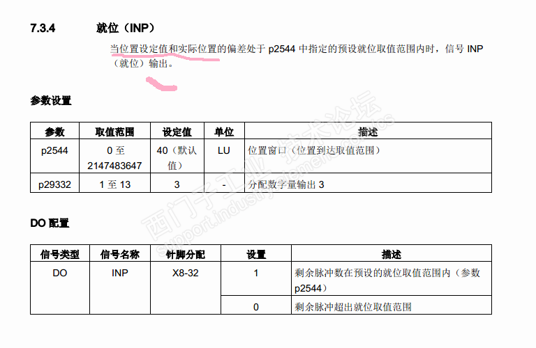 这个信号在我见过的伺服里都有的。且意思都一致。就是指令位置和实际位置的差在这个2544范围内视为到达。输出一个信号。