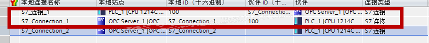 用1214C连接两个OPC服务器, 一个是simatic net 2010安装的, 一个是simatic net V13安装的。 说来也怪, 用博图组态第一个PC站的时候, PLC和OPC之间的S7连接如下图: