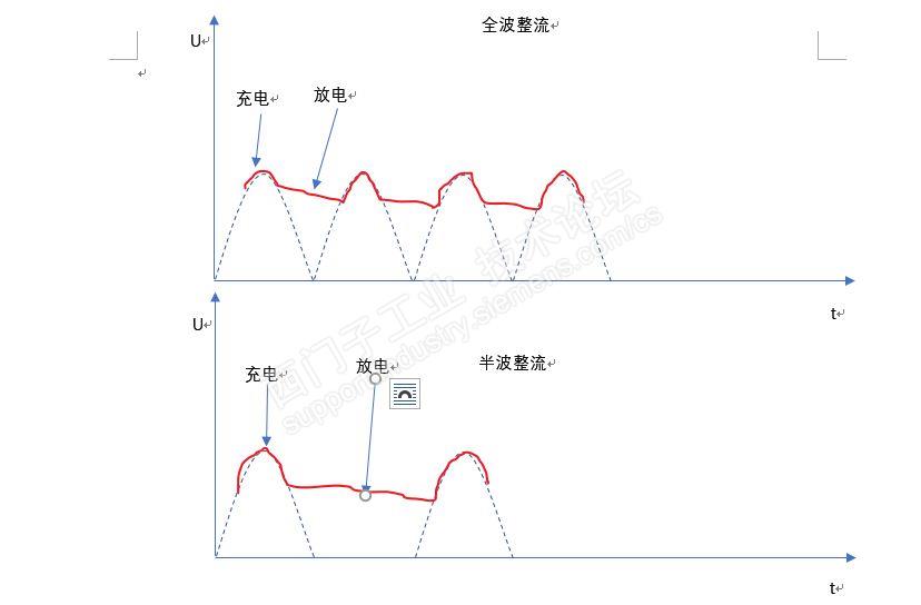 那么波形应该变成图中情况,在进行理想化下:电容无穷大,负载消耗忽略不计。那实际的波形基本就会是一条直线,其值等于波峰值,即电压有效值*1.414。这个结论对于半波和全波应该都适用。