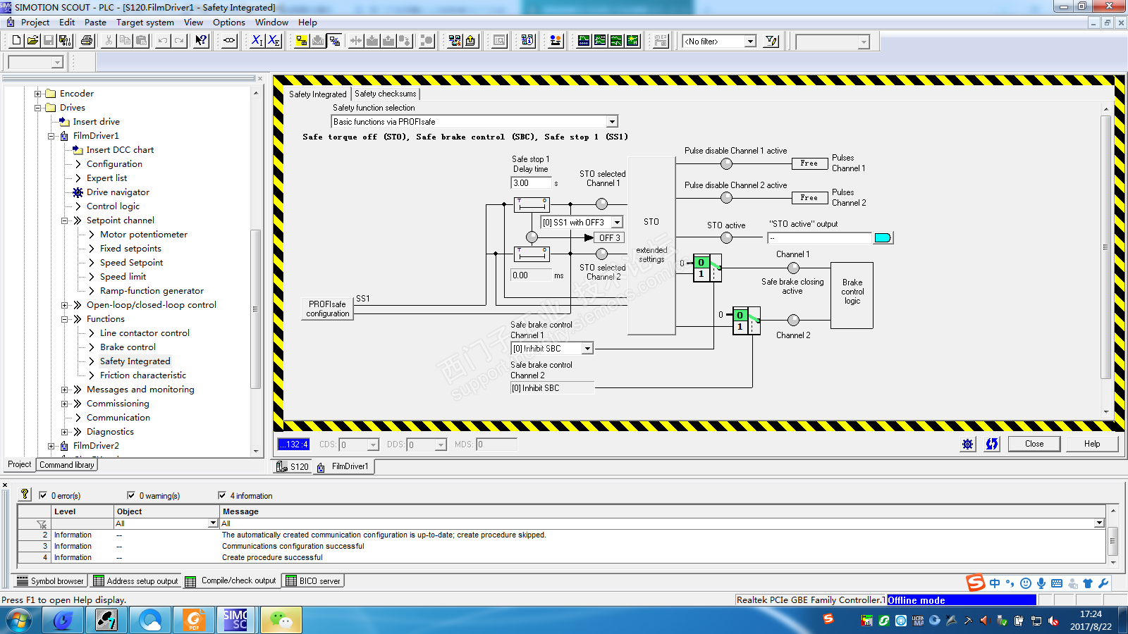 S120驱动通过profisafe进行基本的STO功能,我看别人的驱动组态后画面是这样的