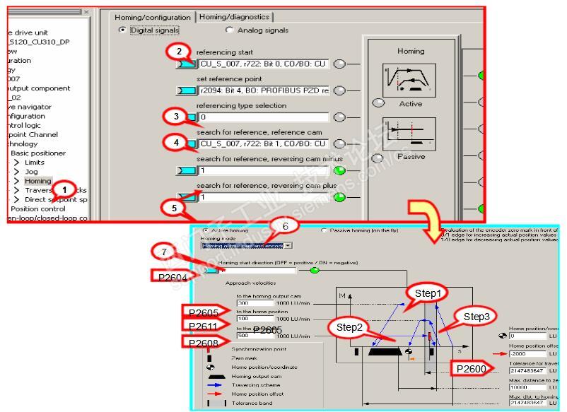 上面相关参数设置已经过确认,确认电机驱动器ON/OFF1闭合,“2”处启动信号已给入;但是homing框内部有两个指示灯中的上面一个没有亮(其他正常驱动器寻零启动后上面一个指示灯会亮)