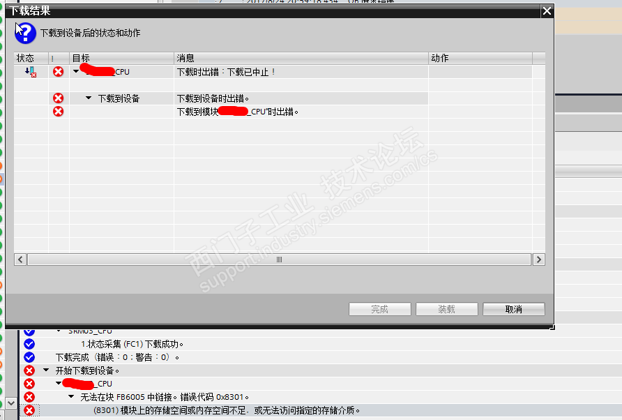 首先是想仿真,点了仿真,打开plcsim之后,编译完成,下载时出错。一直搞不明白,之后打在线选择部分下载,剩余了几个块还是下载不进去。老提示这个: