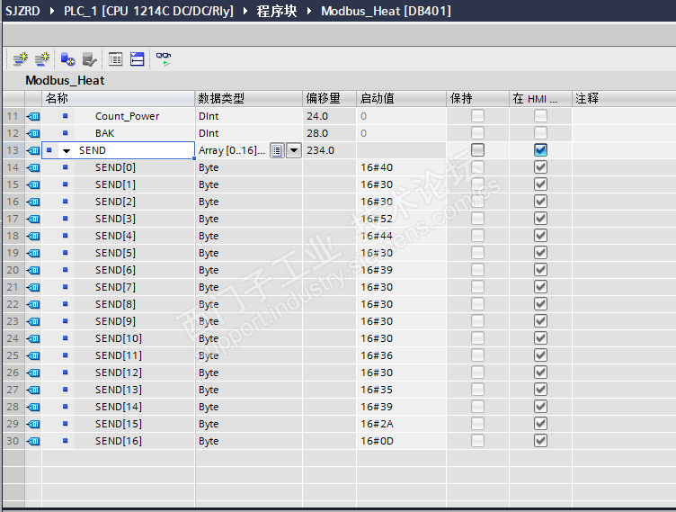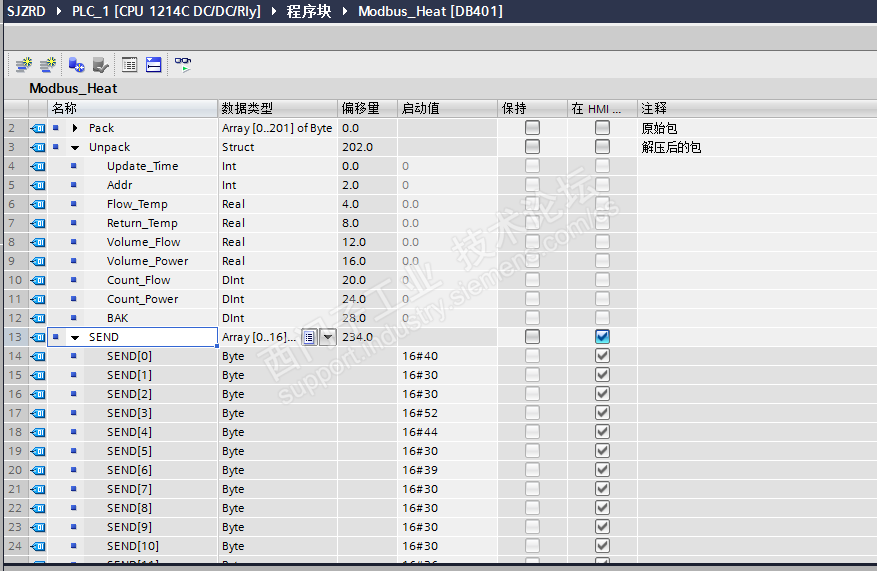 最近在研究别人的一份s7-1200的程序,以下是第三方设备(超声波流量表)与1214C进行串行通信的编写方式