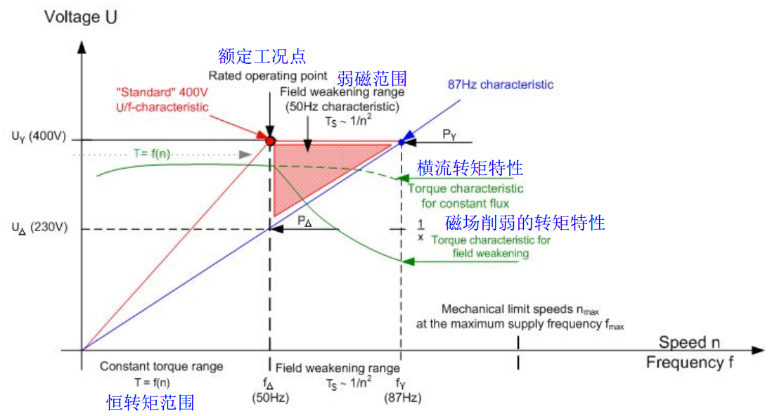87HZ应该是恒功率运行,也就是说 你的电机名牌是 60HZ,400, 在0-60HZ之间运行就是恒转矩运行,在有一些场合为了提高电机/生产的效率,在满足使用的条件下也会使用87HZ恒功率运行,这样速度快,并且满足使用提高了机械效率。