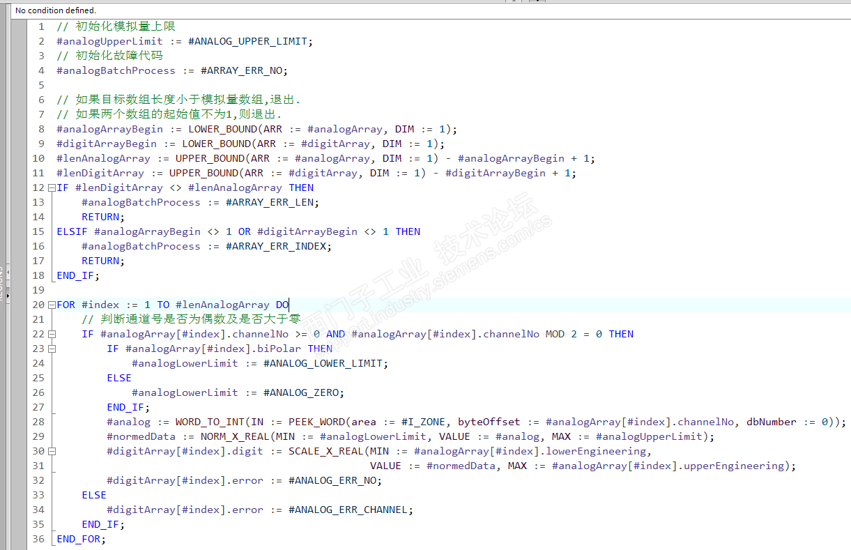 FOR #index := 1 TO #lenAnalogArray DO , 说明循环 lenAnalogArray 次, 如果是C, 就要写成