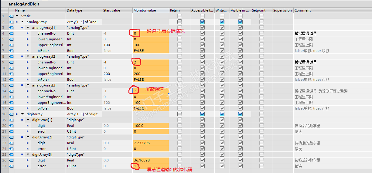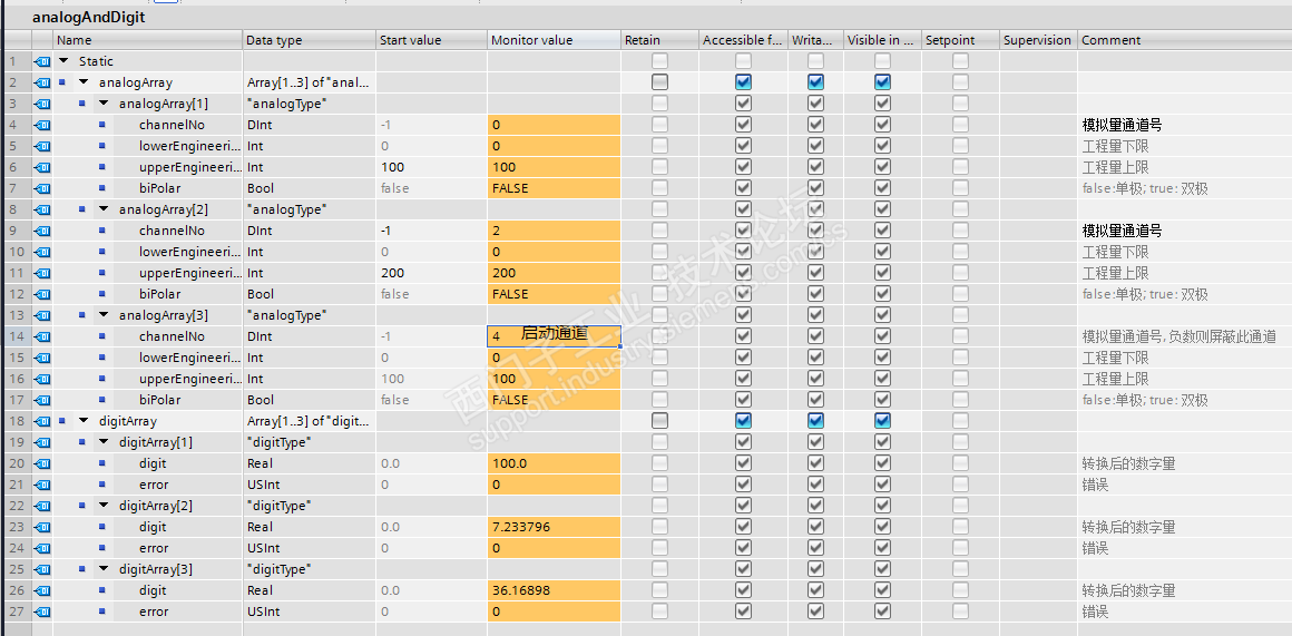1,analogType类型增加模拟量通道, 只要修改通道号就可以指定通道. ob块中不再需要额外的程序.