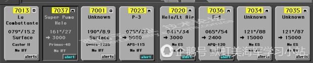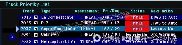 l两屏下面有16个多个目标块,显示了威胁最大16个目标的简要信息,可以由此选择右边屏显示哪个目标的详情。