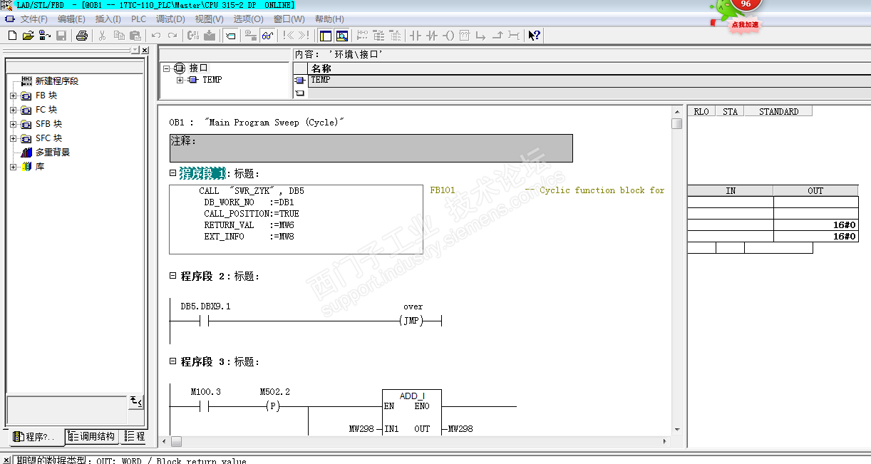 各位大神大家好,本人现在在做一个项目,采用2块315-2DP做软冗余,冗余数据同步采用MPI,挂2个IM153-2子站,冗余切换已经能够顺利切换,现在出现一个问题:我在主机上改变DB块数据,备机相应的数据块应该要做出相应的数据块同步变化,但是我监控2个站得DB数据,发现备站数据根本没有发生变化不与主站DB数据同步,还请各位大神指点一下!具体可以看一下图片: