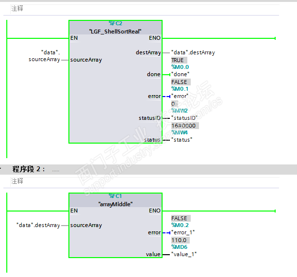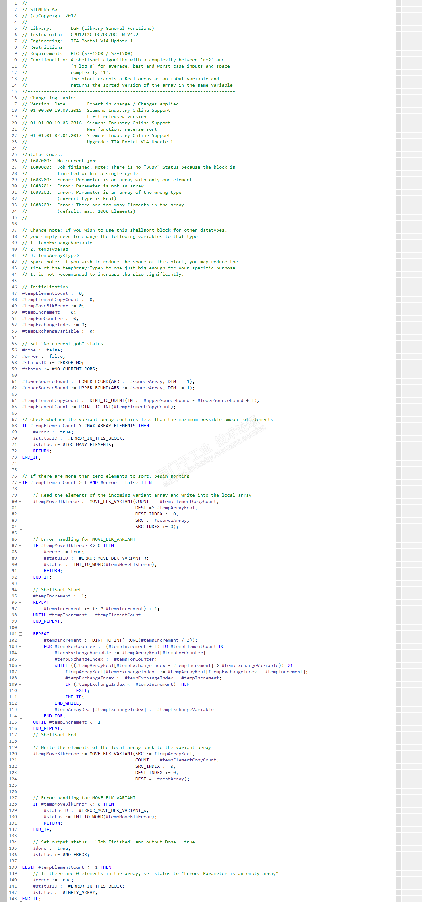 排序本来大算自己用选择排序的, 但发现西门子LGF的库中有希尔排序, 但它是FB的, 使用上还的带个DB块, 修改为FC, 功能上简化了一下, 修复一个小错误.