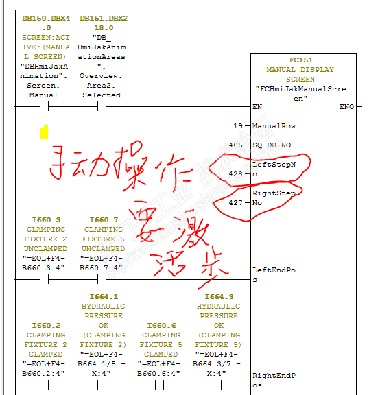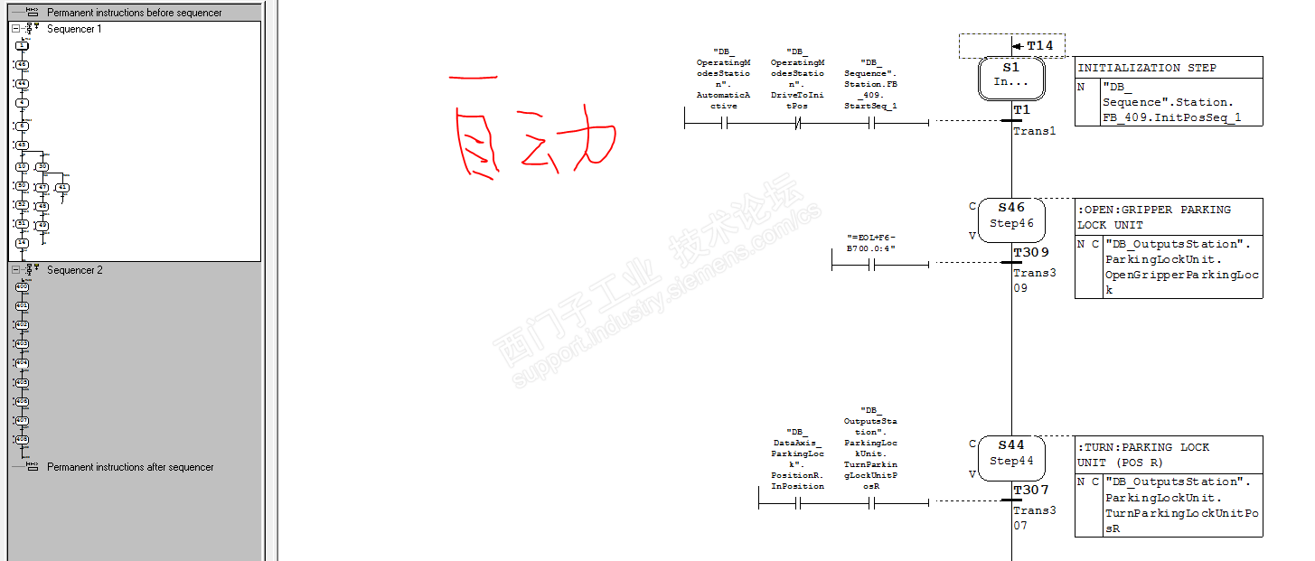GRAPH可以运行在手动和自动模式下。我们这里用的GRAPH在同一个程序块里就有自动和手动两种模式,自动情况程序会根据条件一步步走下去。手动的话我们这里通过simens的HMI LITE标准程序块激活相应的步,就向楼主看到的这种情况,以下图片楼主可以参考一下,同时看看打开安全门时程序的手动模式是否激活,