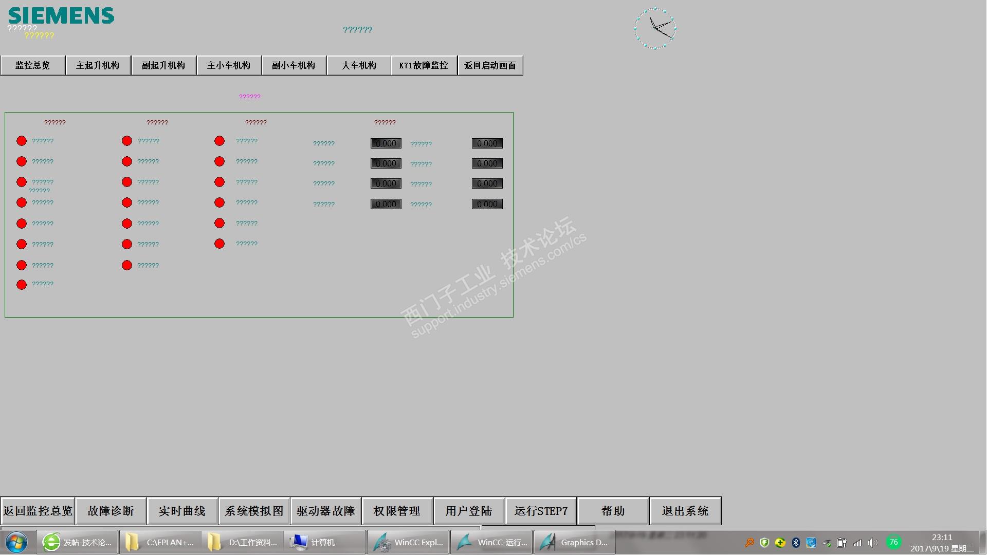 大家好,我有一个WinCC项目原来是用V6.2编写的,现在电脑安装了V7.3版本通过项目移植运行激活后,显示问号。不知道是怎么回事?计算机名称改为本机了,图形编辑器View菜单下的Language语言也切换了都不好使;不至一个项目这样,难道是没破解好还是软件的Bug?奇怪的是有的中文能显示有的不能显示;