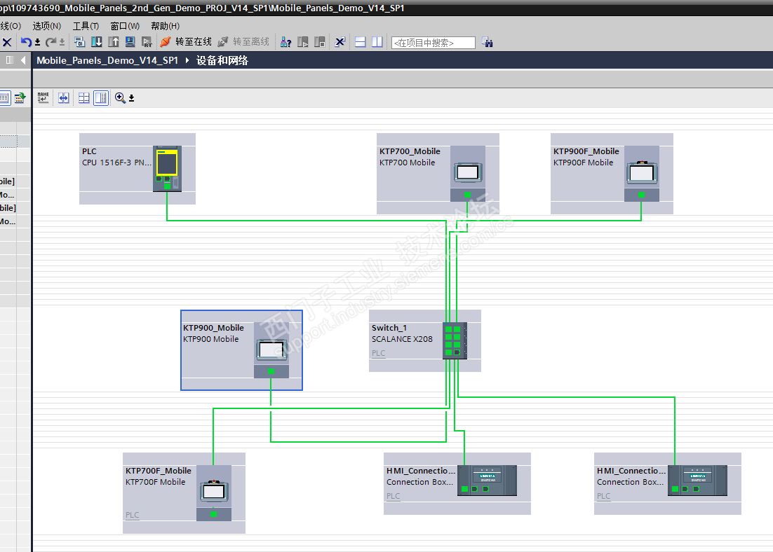 为什么从网上下载的示例程序里面,关于网络拓扑,网线走线是如此,触摸屏的网线和接线盒的网线都是直接进入了X208: