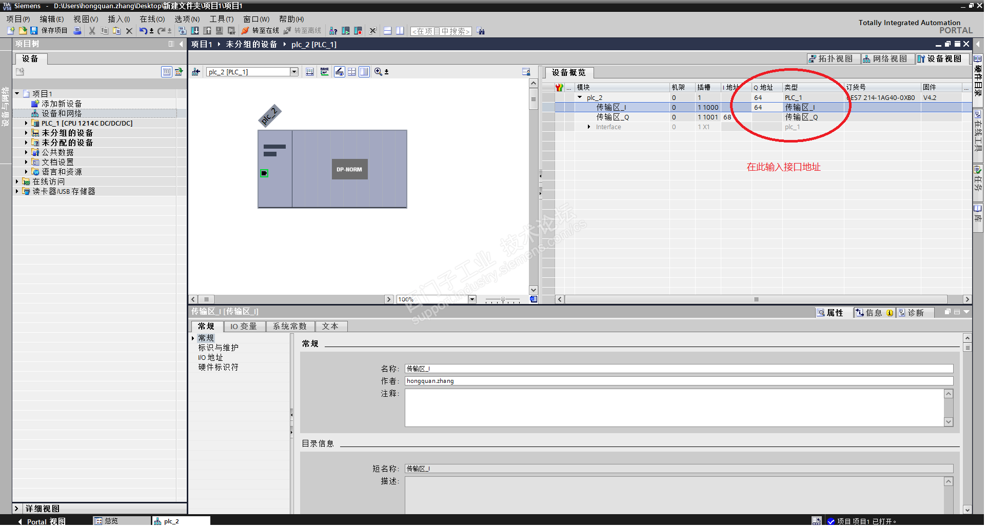 6.在主站项目树下_在线访问_找到从站GSD文件对应的PLC,设置IP地址,名称,与主站组态的GSD文件IP地址,名称一致。
