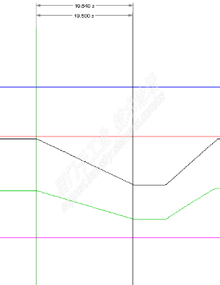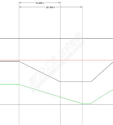 从缸的位置看出有10S的时间差,我想阀的给定应该是一样的,因为换缸之前速度是好的,我就查给定原来不一样,一个是19000,一个是19700,这让我想起来当时安装时这个缸就不好,调试时老掉芯棒,老外才这么给的,为了能把钱先骗到手,程序我们没动过。