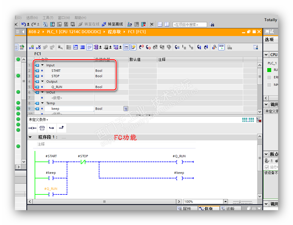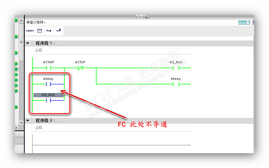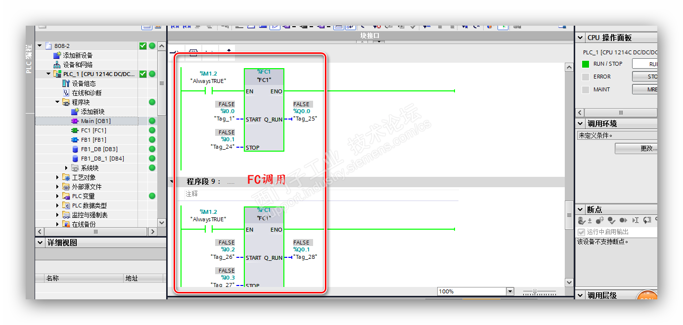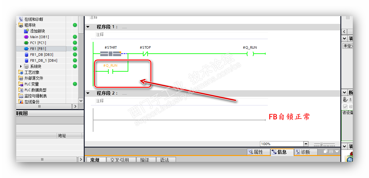 同样的程序在MIAN中调用,但是FC不自锁,FB自锁正常,请问前辈们这是什么原因啊,