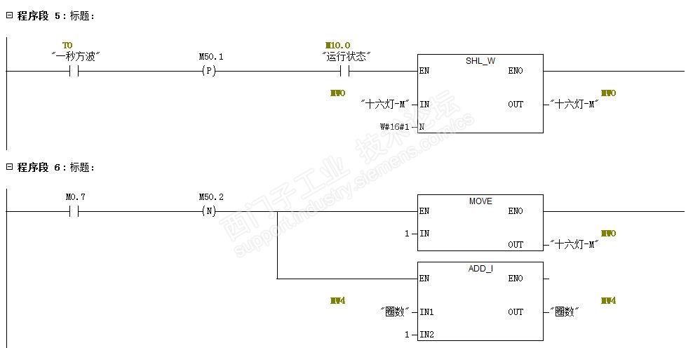 项目要求:当按下I0.0启动,MW0左移16位。如此循环。