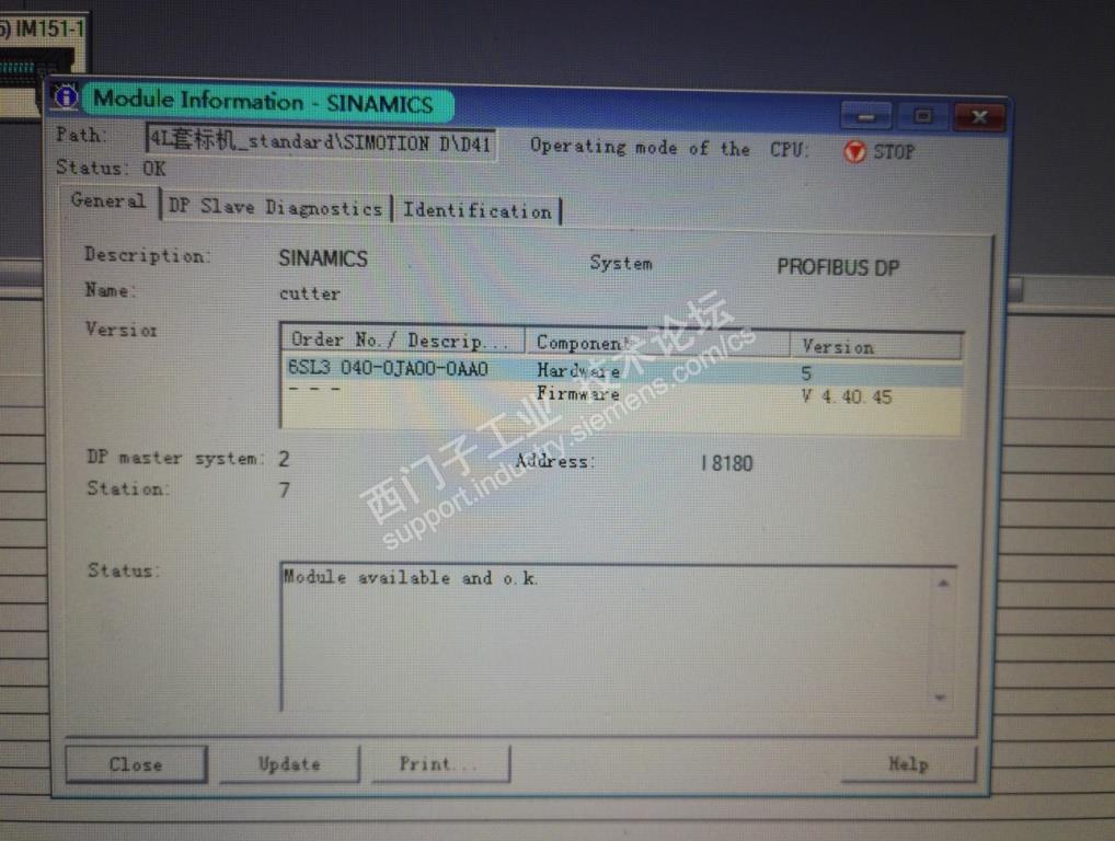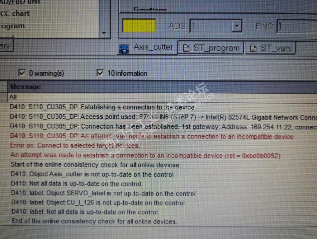 有一台设备S110 CU305-DP为D410的从站,以前的设备上CU305的FW是04.40.23,硬件组态选择CU305V4.4,设备调试正常。现在新的CU305的FW是04.40.45,用以前的SCOUT程序联机,无法连接CU305。目前怀疑是硬件版本问题造成连接失败。