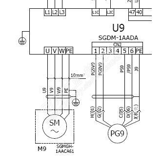 从图纸看,它似乎是正弦编码器,是由一对电源线和一对信号线,加一根地线和屏蔽层构成,图纸上画的是平行线,实际上它应该使用双绞屏蔽线,PG5V9和PG0V9使用一对双绞线为编码器提供电源,PS9和/PS9使用一对双绞线。