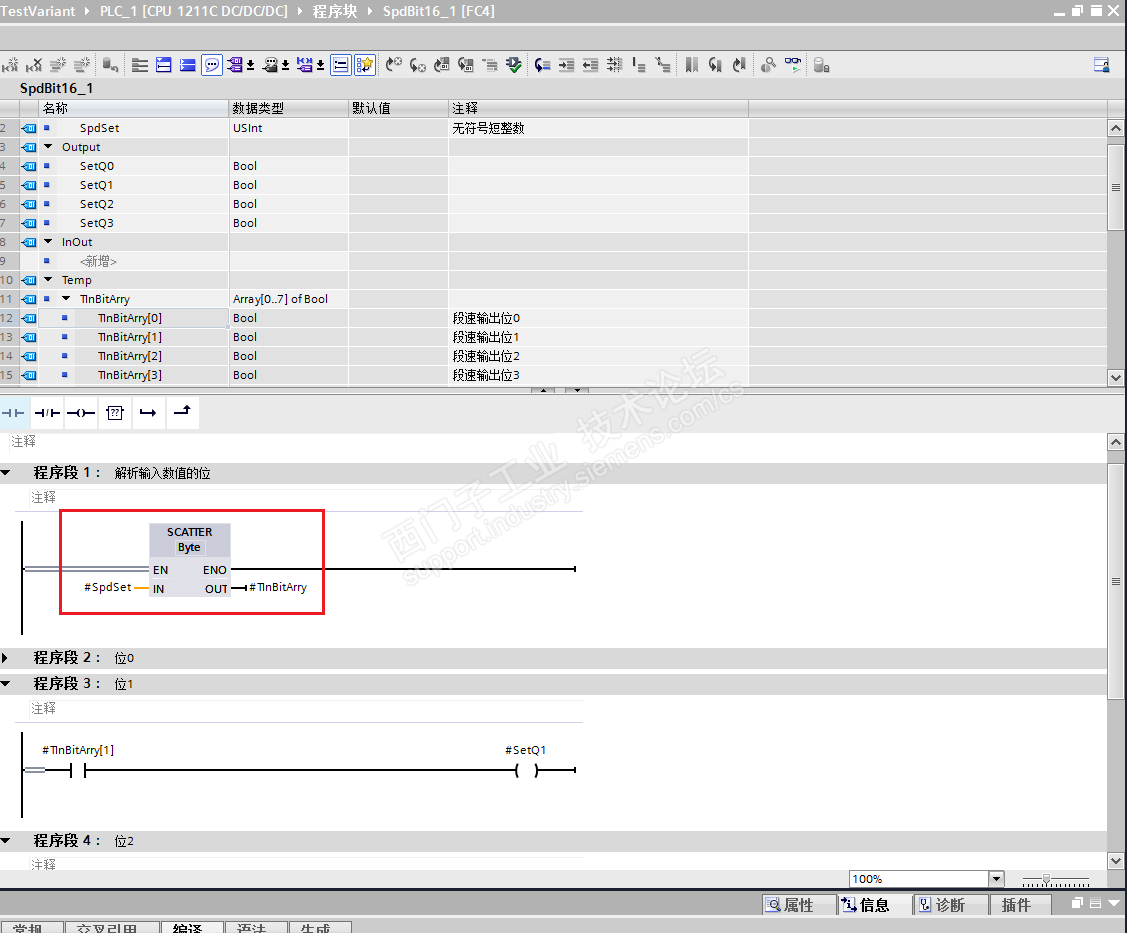 最简单的就是用Slice。写个FC,直接输出4个Bit。这是变频器二进制变速最基本的用法。