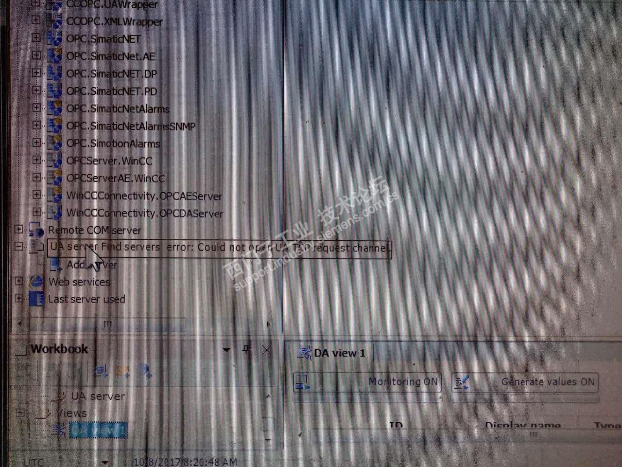 1200plc通过opc连wincc这个方式,网上看了几个教程,在自己的笔记本上照着配置,已经成功连接并且获取到数据了。但是现场工控机配置时,就出现了以下情况: